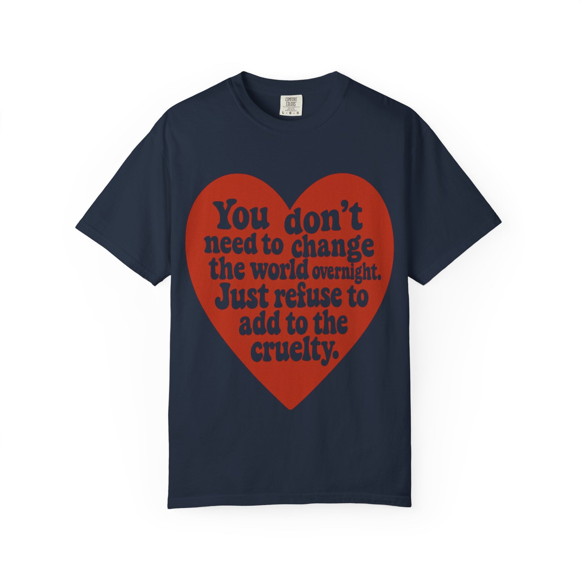 Elevate your wardrobe with this Unisex Garment-Dyed T-shirt, perfect for expressing your personality and values. Crafted from 100% ring-spun US cotton, this tee offers a soft, inviting feel against the skin. Its relaxed fit makes it suitable for casual outings or semi-formal gatherings, effortlessly merging comfort with style. Available in a spectrum of 58 vibrant colors, you can choose one that reflects your unique taste. This shirt is ideal for adults who embrace kindness and compassion, making it a thoughtful gift for friends, family, or even yourself. Perfect for activism, social gatherings, or just lounging around, this T-shirt is a versatile addition to any closet. Celebrate Earth Day, social awareness campaigns, or simply indulge in everyday comfort with a garment that feels as good as it looks.